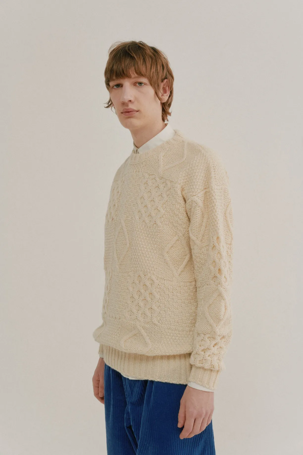 It features a distinctive cable pattern inspired by the traditional Aran sweaters. The cable is influenced by the ropes used by fishermen. The Honeycomb represents the hardworking bee, as fishermen believe encountering a swarm of bees brings good luck. The Diamond symbolizes the treasures of the sea and success.