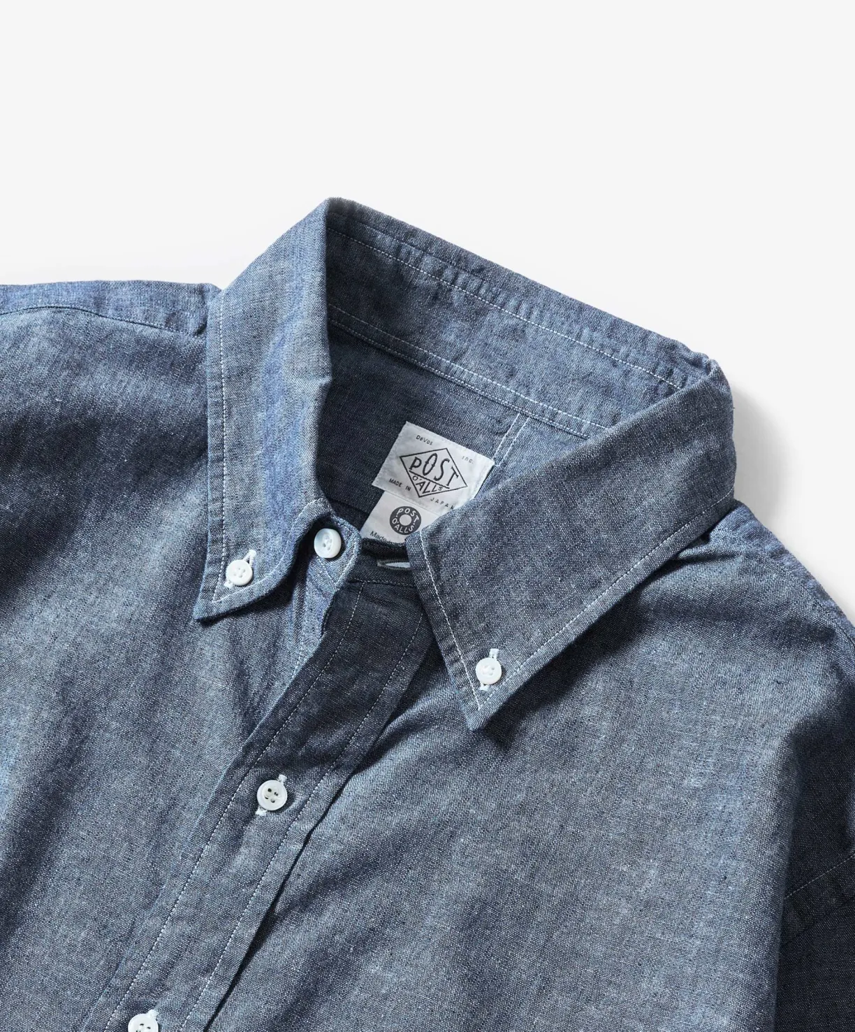 The POST BD2 Shirt is a Takeshi’s version of the iconic American classic. Made up on a washed Japanese Chambray Cotton the shirt features a button down collar, full button front placket, button cuffs and a curved hem.